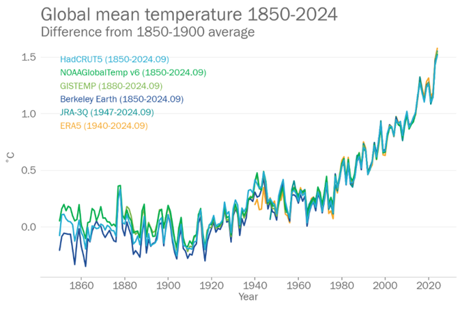 Como forma de controlar os efeitos mais graves do aquecimento global, o Acordo de Paris busca limitar o aumento da temperatura média a 1,5 °C acima dos níveis pré-industriais. De forma excepcional, este ano de 2024 rompe parcialmente com esta meta, já que a temperatura estimada nos nove primeiros meses é 1,54 °C superior, segundo a Organização Meteorológica Mundial (OMM), ligada à Organização das Nações Unidas (ONU). Entretanto, ainda é cedo para dizer que a iniciativa internacional fracassou.
