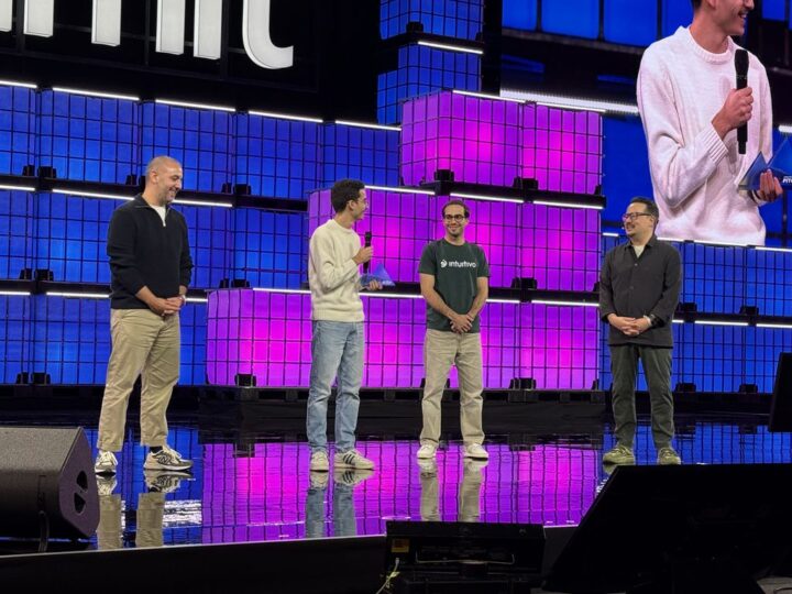 Executivos da Intuitivo recebem o prêmio no Web Summit Lisboa (Imagem: Felipe Szatkowski/Canaltech)