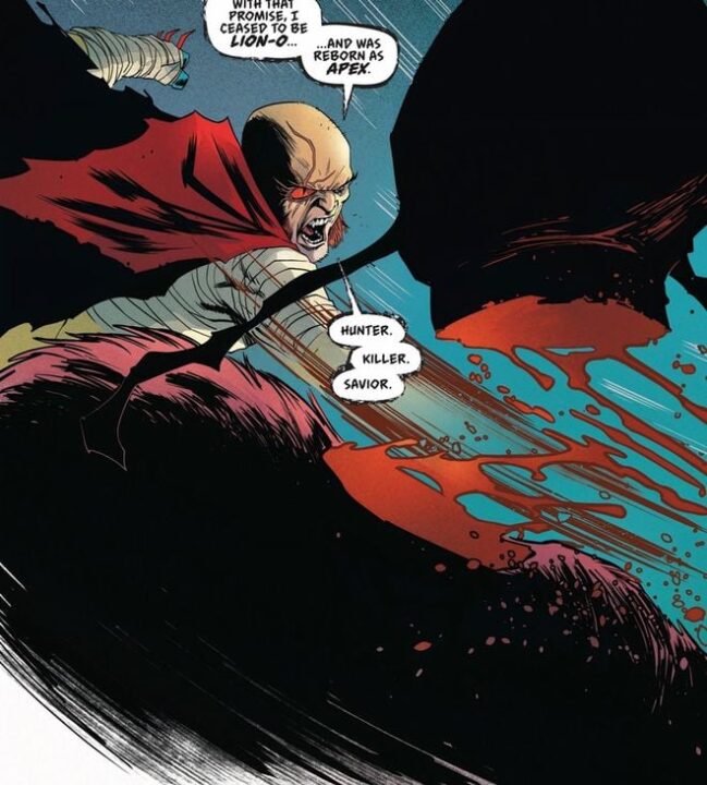 Então, a boa jogada da Dynamite é resolver isso imediatamente. Assim, em Thundercats: Apex #1, lançado recentemente, vemos que a presença misteriosa perseguindo a equipe através do tempo e do espaço ao longo da temporada é uma versão futura de Lion-O que não deu certo, em uma era em que o sonho dele morreu. O mais chocante de tudo é que Lion-O se aliou aos Antigos Espíritos do Mal, em um feedback em que ele vê os ThunderCats morrerem.