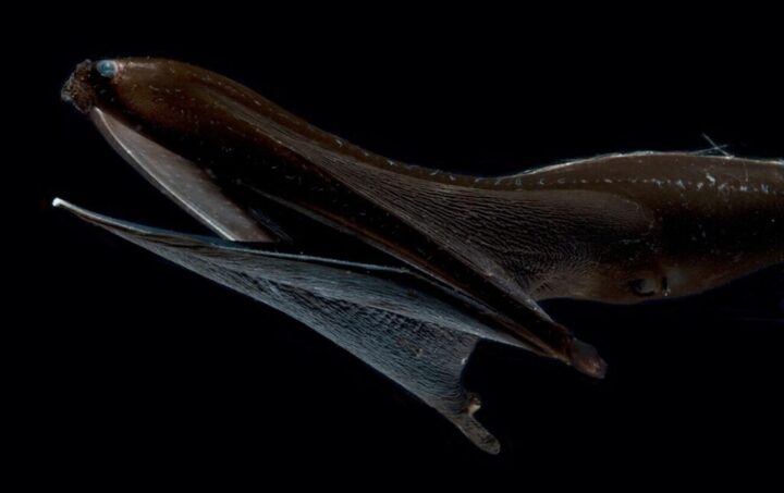 O peixe-pelicano (Eurypharynx pelecanoides) é um habitante das profundezas oceânicas com uma boca desproporcional que pode se expandir a ponto de engolir presas maiores que ele próprio. Seu corpo gelatinoso e seus olhos minúsculos o tornam uma das criaturas mais estranhas dos mares abissais.