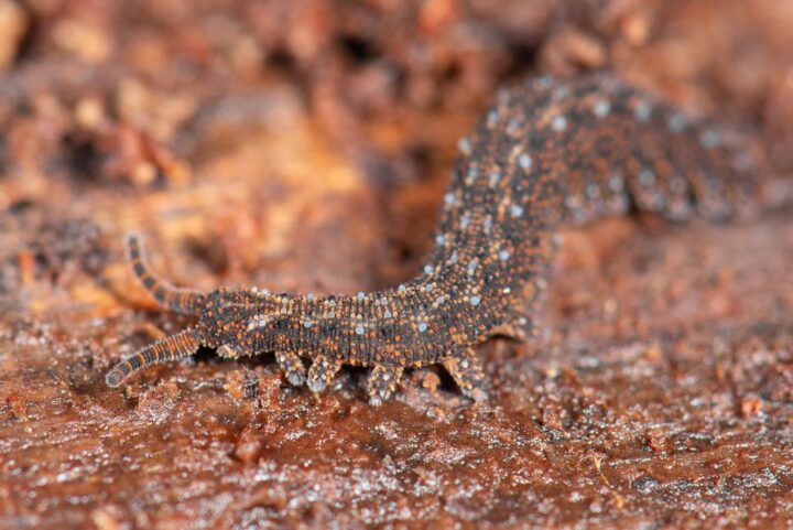 O verme-de-veludo (Onychophora) é um invertebrado com aparência de centopeia que cospe uma substância pegajosa para capturar suas presas. Seu corpo mole e colorido, combinado com esse sistema de caça único, o torna uma das criaturas mais peculiares do reino animal.