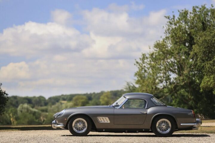 A escolha do material se deve a um motorista alemão, que encomendou o carro pessoalmente para disputar subidas de montanha e corridas locais. Com um motor V12 de 280 cv, a 250 GT SWB combina o design icônico da linha California com a performance das pistas.