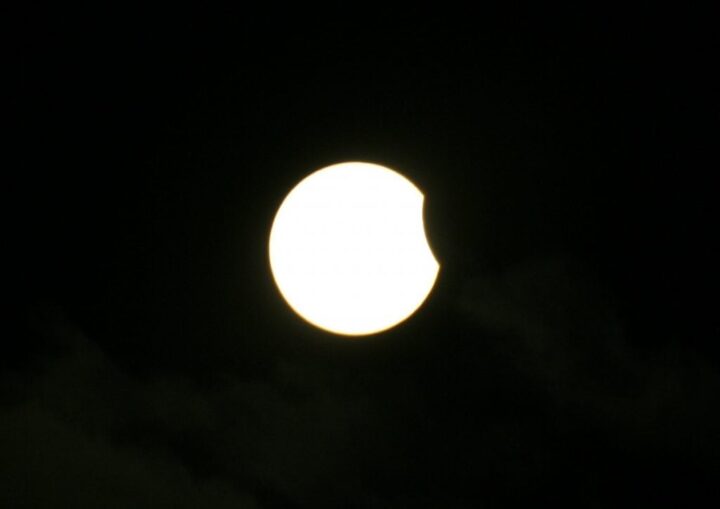 O eclipse solar começou às 6h56 (horário de Brasília), sobre o extremo sul do Oceano Antártico e áreas costeiras da Antártida. Foi nesse ponto remoto, coberto por gelo e mar, que a sombra mais clara da Lua tocou primeiro o planeta, iniciando a fase parcial do fenômeno. A partir daí, o eclipse avança pelo Hemisfério Sul, projetando lentamente a “mordida” no disco solar.