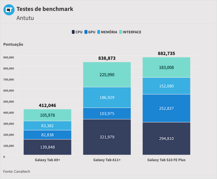 “O Galaxy Tab A11+ tem um desempenho aceitável na categoria: ele não é um tablet extremamente rápido, mas está de bom tamanho dentro da sua proposta, e até consegue rodar jogos de forma mais casual.”
