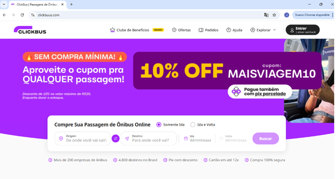 Um levantamento da ESET detectou uma nova campanha golpista que consiste na disseminação de sites falsos que se passam pela ClickBus, empresa que vende passagens rodoviárias online.