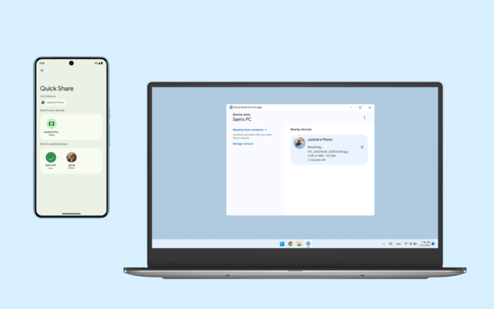 O Quick Share está disponível de forma nativa em celulares e tablets Android, além de possuir um aplicativo para Windows que permite a troca entre PC e dispositivos móveis.